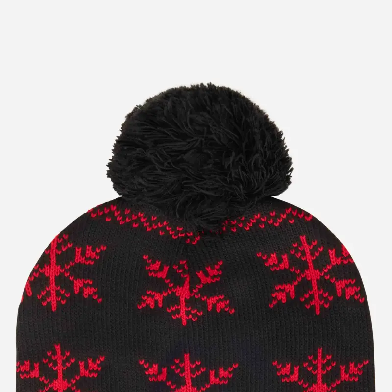 Berretto AC Milan in maglia con pompon, fantasia natalizia con fiocchi di neve e scritta AC Milan.