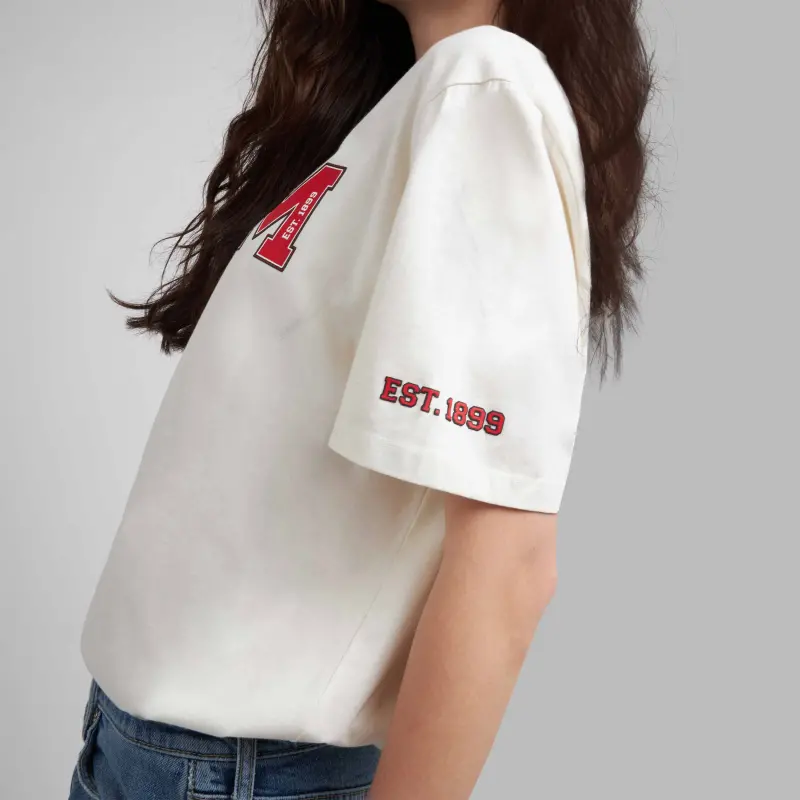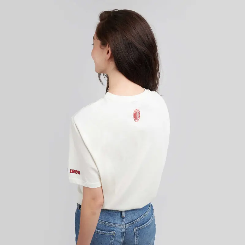 The AC Milan College Collection represents a new capsule collection of clothing that repurposes elements of our heritage, meeting the world of colleges and universities.Explore the AC Milan College Collection: white T-shirt belonging to the College capsule collection.- T-Shirt