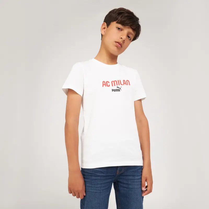 The Culture collection represents a capsule collection between AC Milan X Puma.Explore the culture collection: a white short-sleeved T-shirt kids- Contrasting AC Milan lettering in the center of the chest