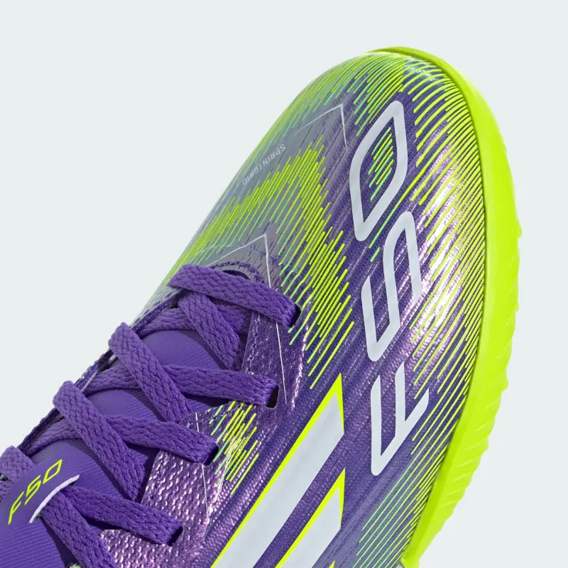 Find your fast to truly express yourself on the field. Feel the rush in adidas F50 cleats engineered for speed. Standing out with an eye-catching Sprintgrid print, the Fiberskin upper on these juniors’ League soccer cleats employs a perforated tongue for cool play. A lug rubber outsole offers pace on artificial turf surfaces.