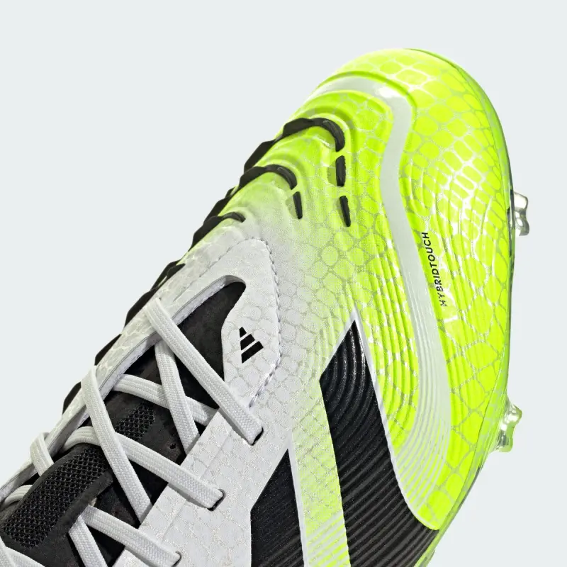 Discover the difference between aiming to score and knowing you will with adidas Predator cleats that are crafted for goals. These juniors’ Elite cleats have a HybridTouch upper with strategically placed rubber Strikeskin fins that provide perfect contact with the soccer. The Controlframe 2.0 firm ground outsole and adidas PRIMEKNIT collar are designed to give you a stable stance when the goal’s at your mercy.