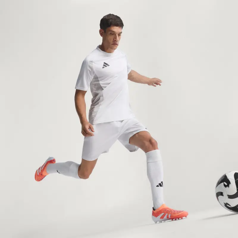 Discover the difference between aiming to score and knowing you will with adidas Predator cleats that are crafted for goals. These Elite cleats have a HybridTouch upper with strategically placed rubber Strikeskin fins and a laceless construction that help provide perfect contact with the soccer. The Controlframe 2.0 firm ground outsole and adidas PRIMEKNIT collar are designed to give you a stable stance when the goal’s at your mercy.