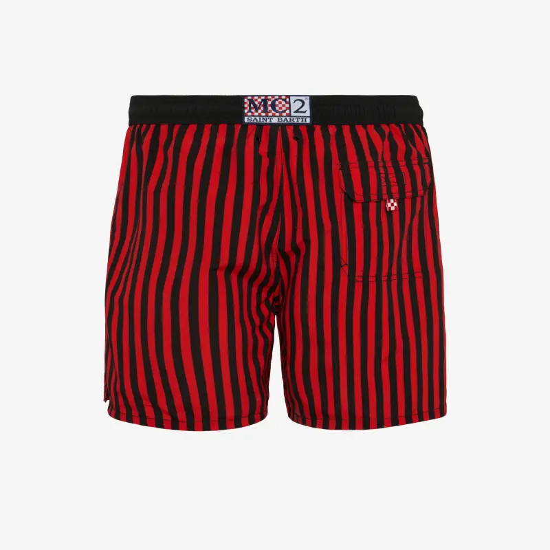 MC2 SAINT BARTH X AC MILAN SWIM SHORTS WITH RED AND BLACK STRIPES