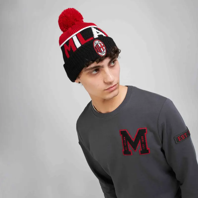 NEW ERA X AC MILAN BEANIE WITH BOBBLE: